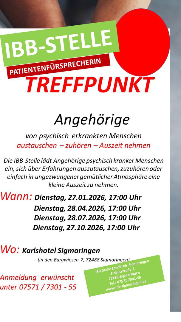 Die IBB-Stelle lädt zum "Treffpunkt" für Angehörige psychisch erkrankter Menschen ein.
